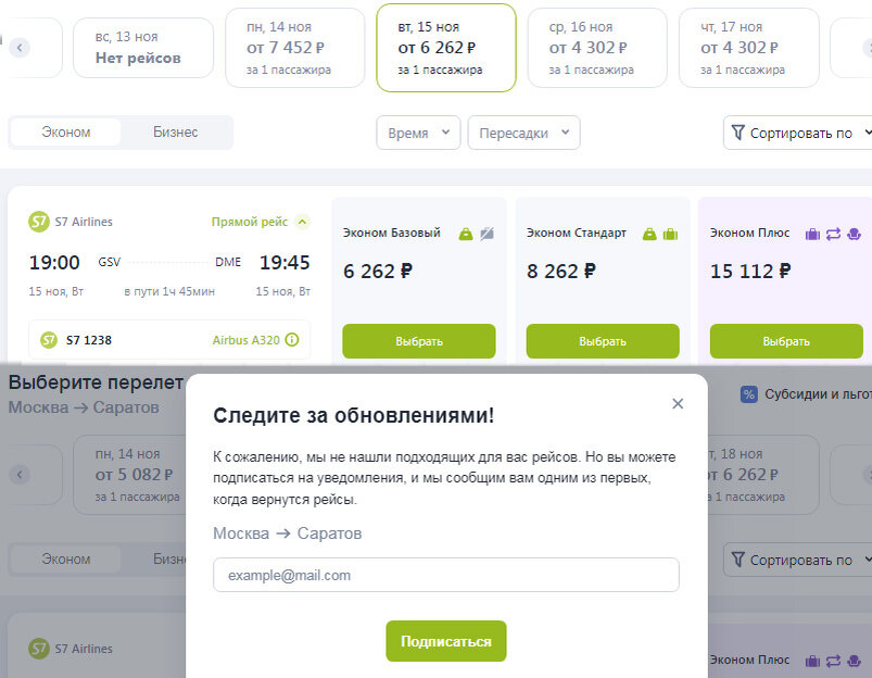 Цены на рейс Саратов-Москва