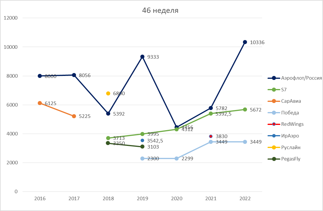 Динамика цен 46-й недели за 7 лет.